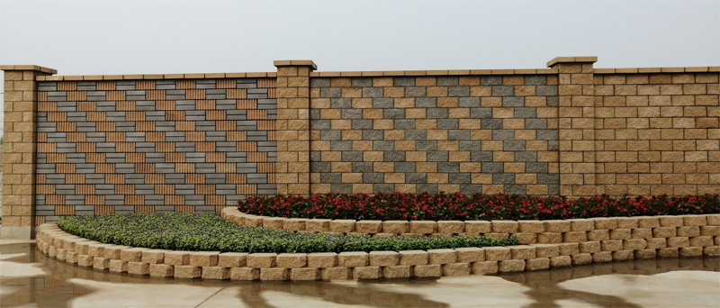 此產(chǎn)品不僅具有普通承重砌塊的優(yōu)良性能,而且具有與石材一樣的裝飾外表面,把承重和裝飾結為一體,在施工時建筑結構同步完成。其裝飾效果可以通過單一品種或多種砌塊組砌、設計排磚方法、與其它裝飾材料配合應用、適當選用灰縫的顏色、以及改變局部墻體砌塊的凹凸程度等各種措施加以實現(xiàn)。裝飾砌塊不僅應用于室外,也可以用于室內墻面。其中,條紋面、劈裂面和磨光面效果,古樸、典雅、風格前衛(wèi)。